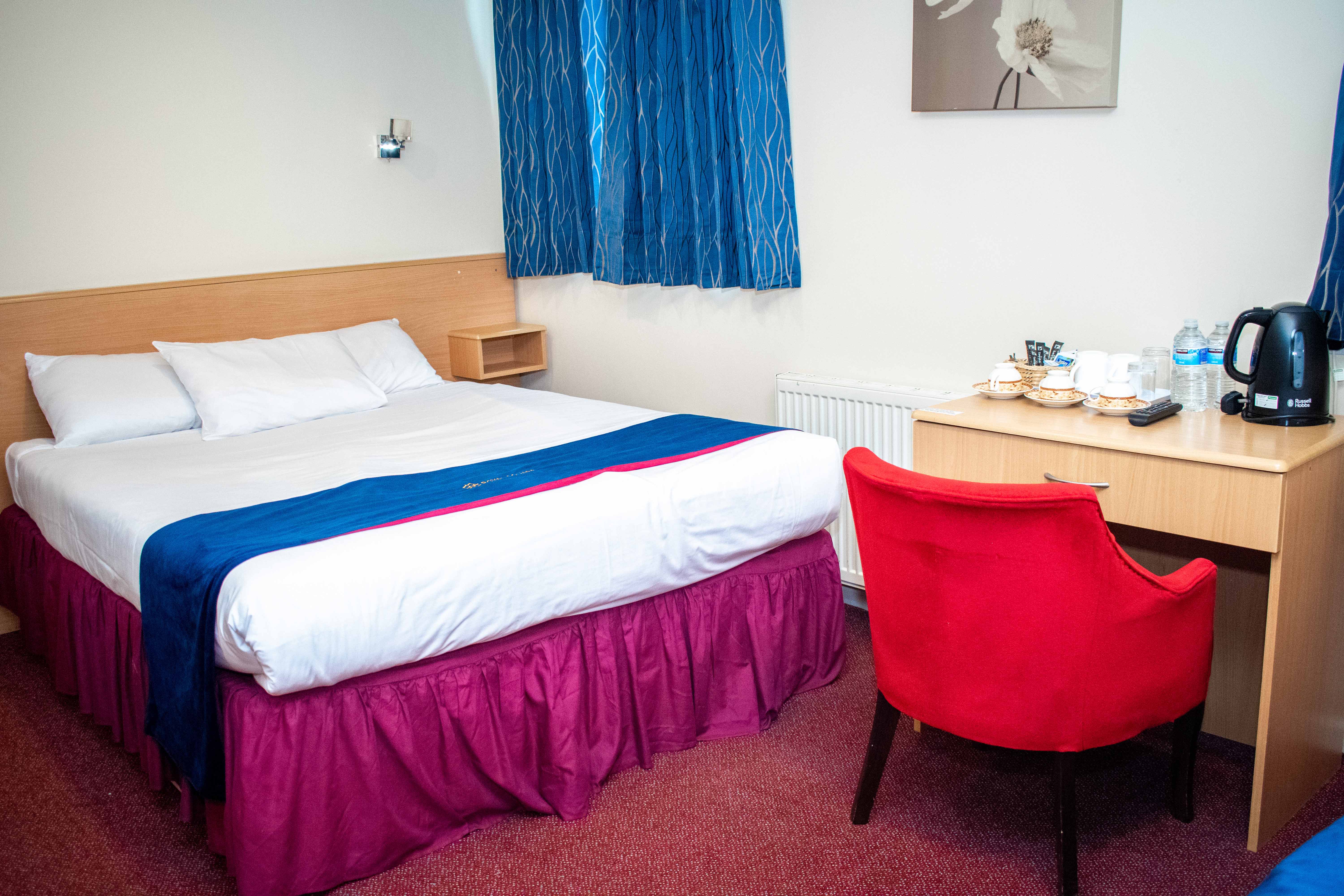 Welcome to our spacious and welcoming Family Room, designed to offer comfort and convenience for groups of up to four. Perfect for families or friends traveling together, this versatile room ensures a delightful stay with a range of thoughtful amenities. The room features a combination of a double bed and one single bed, with an additional single bed available upon request, providing a cosy and accommodating space for your group. The en suite bathroom adds a touch of luxury, with complimentary toiletries, plush linens, towels, and a soft bath mat. A dedicated desk and chair offer a comfortable workspace for moments of productivity or relaxation, while the wardrobe, luggage rack, and full-length mirror provide practical storage solutions and a space to prepare for the day. Stay refreshed with complimentary tea and coffee in your room, and make use of the iron and ironing board to keep your attire looking sharp. Enjoy seamless connectivity with free fibre optic broadband Wi-Fi, available throughout the property, whether you’re catching up on emails or planning your next activity. After a busy day, unwind in our hotel’s cosy pub, where a selection of beers, wines, whiskies, and cocktails awaits, offering the perfect spot to relax and socialize. Parking is made convenient with our secure on-site car park, available at a nominal charge, and for those flying, our affordable parking option ensures peace of mind without the high costs of airport parking. Your comfort is our priority, and we look forward to providing you and your group with a memorable stay in our Family Room.